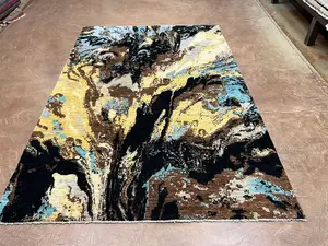 This Tabriz rug, crafted in Pakistan, showcases a stunning floral design that reflects centuries of traditional craftsmanship. The intricate motifs are brought to life through a rich color palette of deep blacks and soft creams, creating a striking contrast that enhances its visual appeal. Perfectly aligned with contemporary decor trends, this piece adds an element of elegance to modern and classic interiors alike. Measuring 6'0" x 9'0", it seamlessly combines luxurious textures with enduring style.