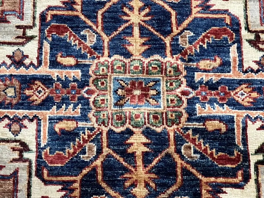 Kazak rugs have their roots in the Caucasus region, an area that spans modern-day Armenia, Azerbaijan, and Georgia. Persian motifs, geometric Turkish patterns, and Russian-inspired floral designs all come together in a dramatic blend. In recent years, the production of Kazak rugs has largely shifted to Afghanistan, where skilled artisans continue to honor the traditional designs and techniques that have defined these rugs for centuries.