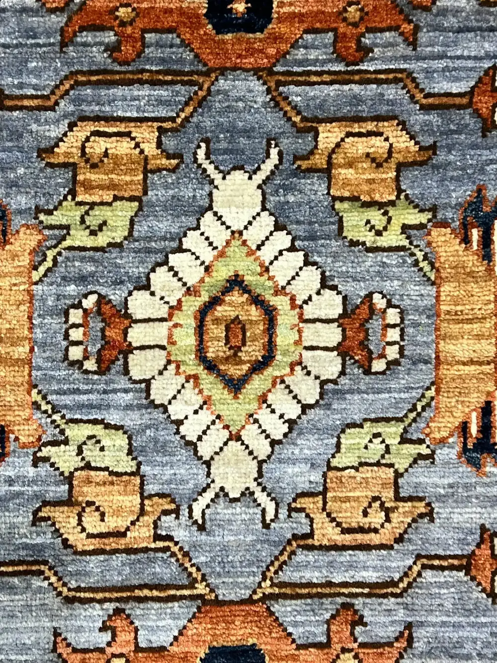 This rug is a reimagination of an antique rug design, created for a modern market with modern colors and scale.