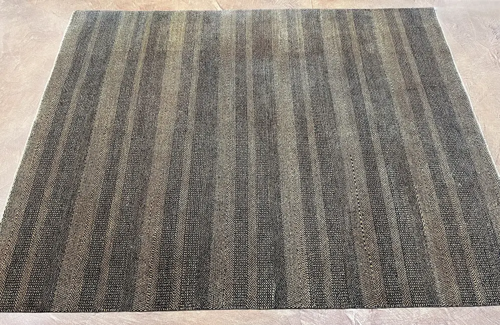 Crafted in India, this Gabbeh rug showcases a harmonious blend of traditional craftsmanship and contemporary appeal. Its striking geometric pattern, rendered in earthy tones, adds depth and texture, making it a versatile addition to any room. Measuring 7'11" x 10'3", this piece complements modern decor trends while honoring its cultural roots. A unique highlight is its hand-woven quality, ensuring that each rug is not only a functional piece but also a work of art.