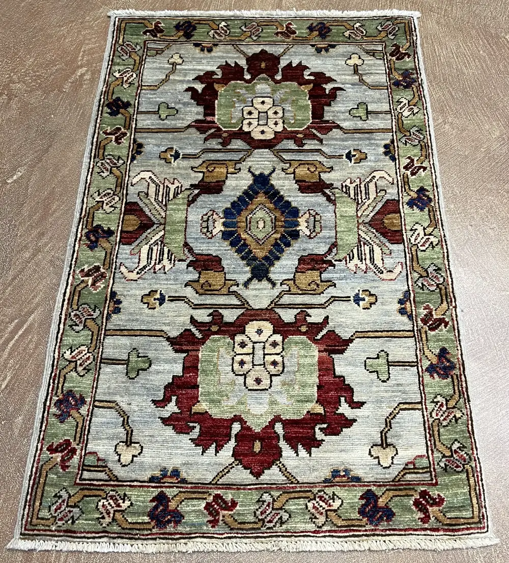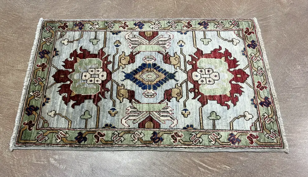 Introducing a modern tribal rug that beautifully reflects Afghanistan’s rich textile heritage and traditional craftsmanship. Its intricate patterns and vibrant colors are complemented by a soft, durable wool pile, making it a tactile delight that enhances any space. This versatile piece seamlessly aligns with contemporary decor trends, offering a striking focal point for both traditional and modern interiors. With dimensions of 2'2" x 3'5", this rug exemplifies a unique blend of cultural significance and modern design.