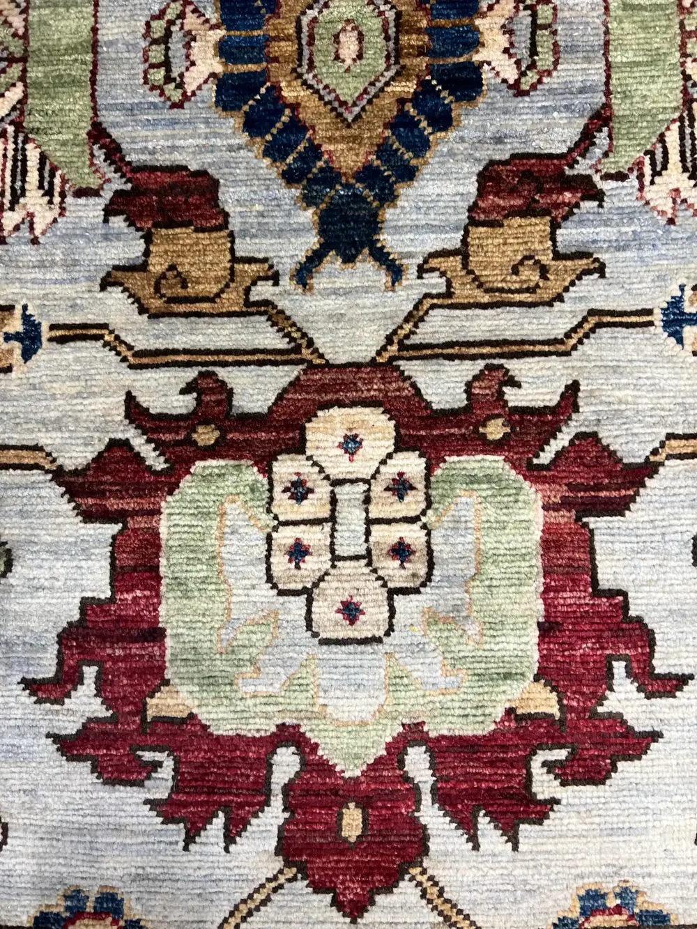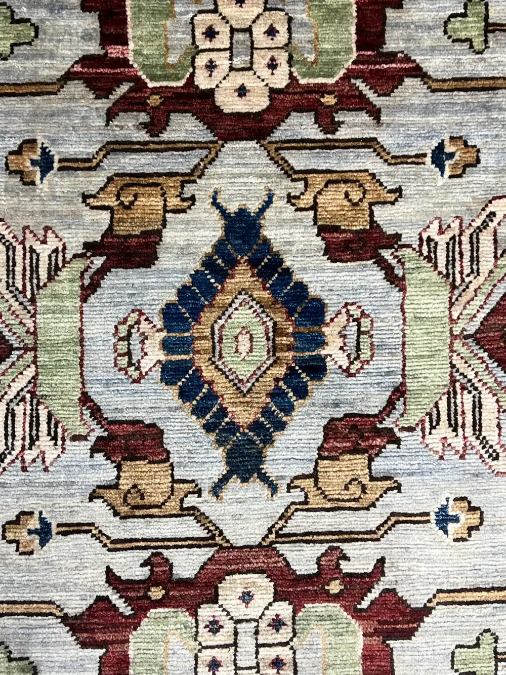 This rug is a reimagination of an antique rug design, created for a modern market with modern colors and scale.