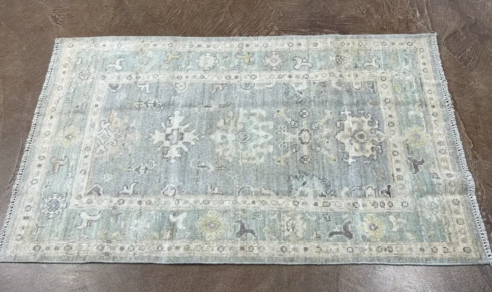 Suggested Retail Price: $1,200.00 Online Sale Price: $960.00 (Learn more about our shipping and returns policy) Please note, if you are buying multiple rugs or you are designer please contact us for custom pricing. This beautifully crafted Afghan Oushak rug showcases traditional designs that reflect the rich cultural heritage of the region. Its subtle color palette, featuring soft blues and intricate patterns, brings a serene elegance that seamlessly complements contemporary decor trends. Artfully handwoven by skilled artisans, this piece highlights the unique craftsmanship and dedication to detail characteristic of Afghan textiles. With dimensions of 2'11" x 4'11", it serves as a versatile accent for both modern and classic interiors. $1,200.00 Original price was: $1,200.00.$1,200.00Current price is: $1,200.00.Add to cart