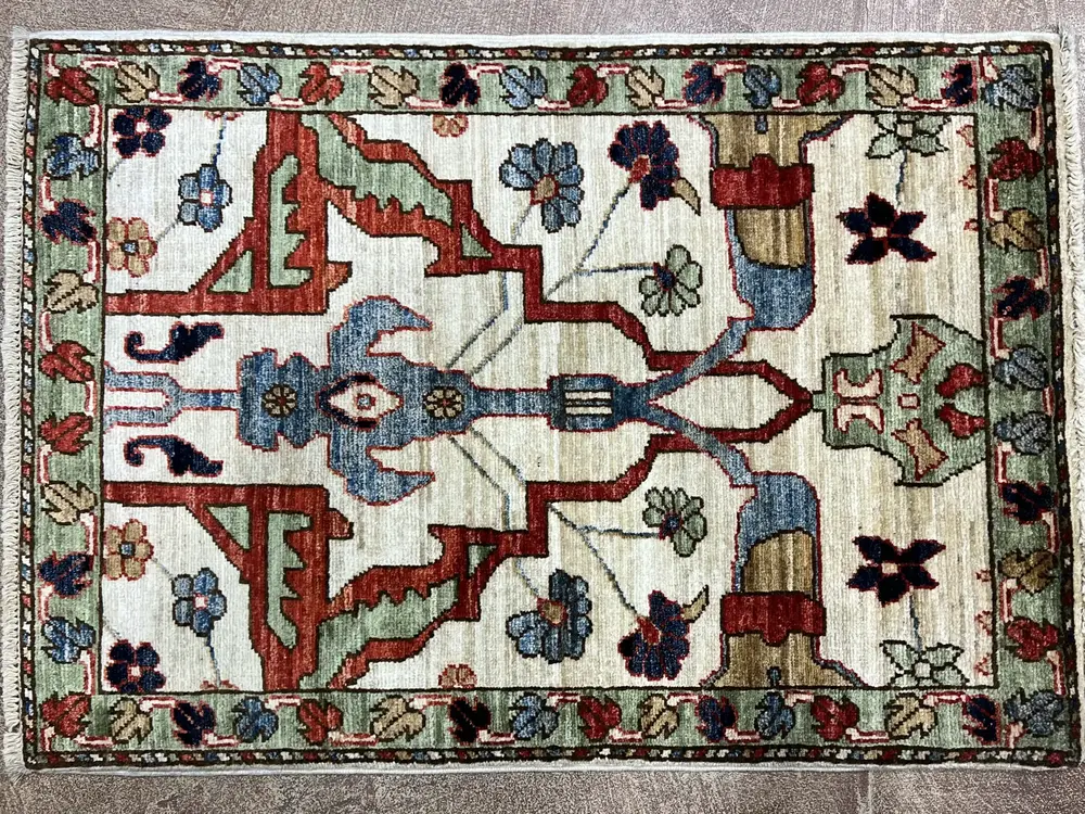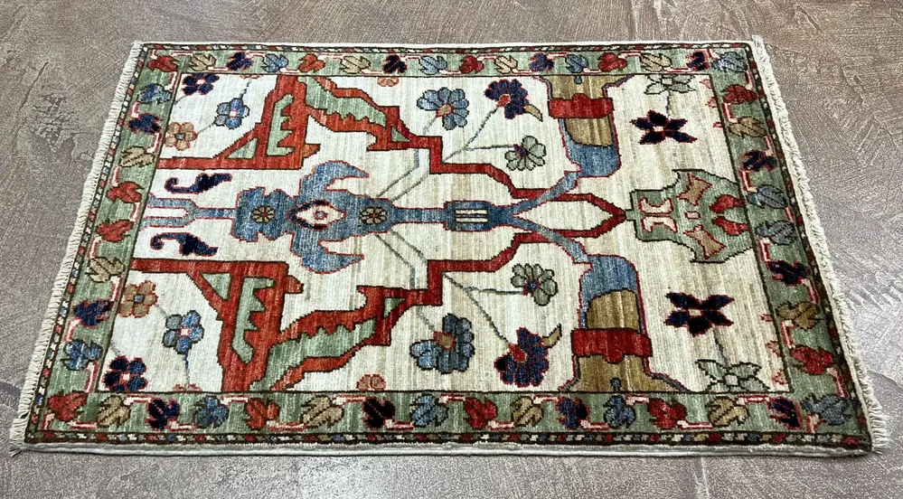 Suggested Retail Price: $450.00 Online Sale Price: $400.00 Please note, if you are buying multiple rugs or you are designer please contact us for custom pricing. Introducing the Aryana Garrus Bijar a beautifully crafted piece that embodies the rich textile tradition of Afghanistan. This rug showcases intricate patterns with vibrant hues of red, green, and blue, creating a striking focal point in any room. Its distinctive design seamlessly integrates into contemporary decor trends, adding warmth and character to modern spaces. Measuring 2'1" x 3'0", this artisan-made rug reflects the skillful craftsmanship that has been passed down through generations. $450.00 Original price was: $450.00.$400.00Current price is: $400.00.Add to cart