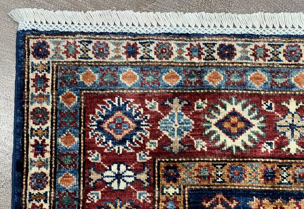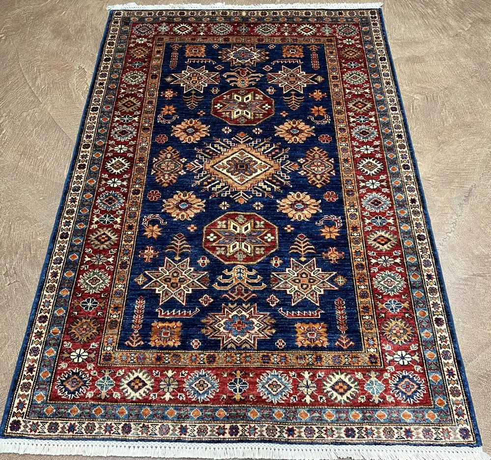 Suggested Retail Price: $1,800.00 Online Sale Price: $1,500.00 (Learn more about our shipping and returns policy) Please note, if you are buying multiple rugs or you are designer please contact us for custom pricing. This striking Kazak rug showcases the rich textile heritage of Afghanistan, celebrated for its intricate patterns and vibrant color palette. Crafted by skilled artisans, its unique geometric motifs are beautifully contrasted against a deep blue background, offering a blend of tradition and contemporary appeal. Ideal for both modern and classic interiors, this piece adds texture and warmth to any space. Measuring 4'0" x 6'0", it stands out as a captivating focal point in your home decor. $1,800.00 Original price was: $1,800.00.$1,800.00Current price is: $1,800.00.Add to cart