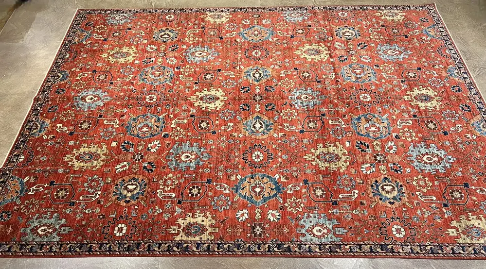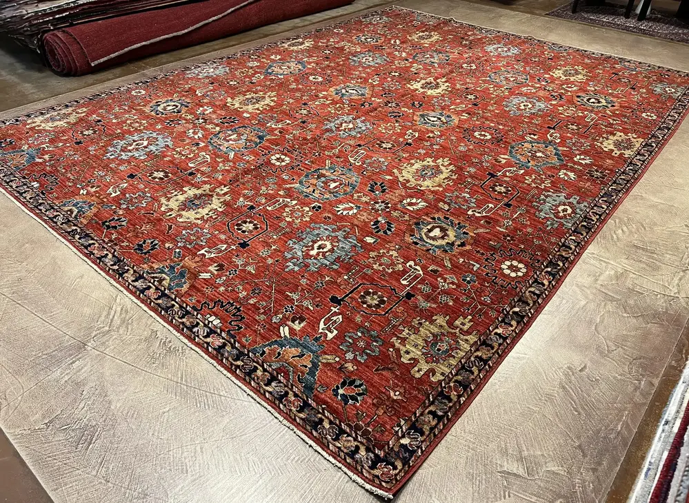 The Aryana Mahal rug showcases traditional Afghan craftsmanship, steeped in rich history and cultural significance. Its vibrant palette of reds, blues, and warm earth tones is adorned with intricate floral motifs, creating a striking visual that complements both classic and contemporary decor. Designed with meticulous attention to detail, this piece offers a luxurious texture that enhances any space it graces. With dimensions of 10'0" x 14'2", the Aryana Mahal is not just a rug; it’s an enduring work of art.