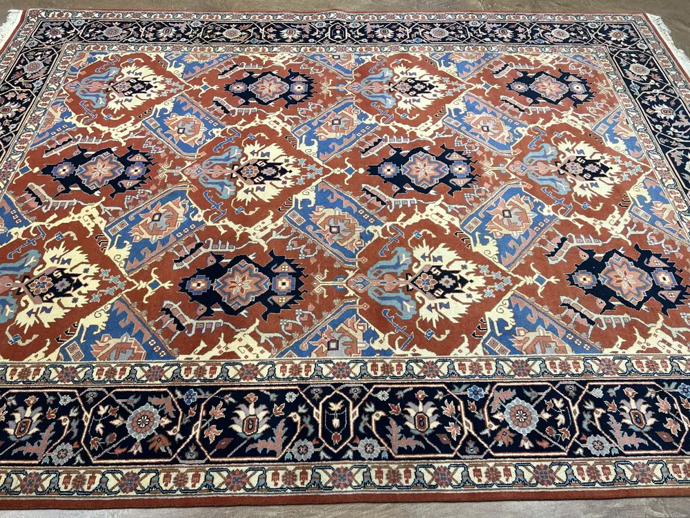 Discover the elegance of this Serapi rug, a testament to Romania's rich textile traditions. With its intricate patterns and a vibrant color palette, this piece beautifully combines historical craftsmanship with contemporary style. The luxurious texture invites comfort, making it a perfect addition to various modern decors. Measuring 8'10" x 11'11", this rug stands out as a unique centerpiece for any living space.
