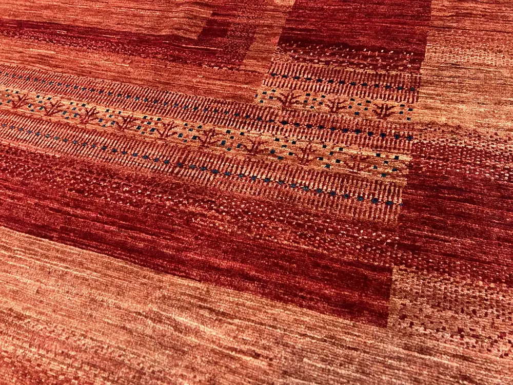Gabbeh are tribal rugs crafted by the nomadic Kurdish, Luri and Qashqai people of the Zagros Mountains in Iran. The word Gabbeh translates from Farsi meaning raw, uncut, or natural. These rugs are a byproduct of a pastoral lifestyle, produced using wool from their sheep herd and dyes from native plants. Gabbeh rug concepts are now being copied and reimagined at many notable modern centers of weaving across the world.