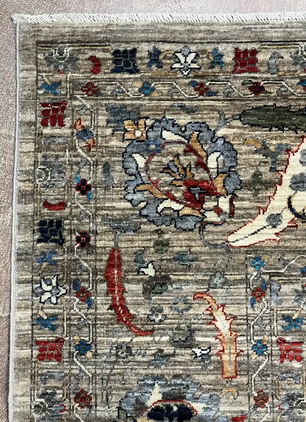 The Nooristan Mahal rug, crafted in Afghanistan, showcases a rich tapestry of traditional designs rooted in Persian artistry. Its intricate patterns feature a harmonious blend of colors, with delicate floral motifs that invite a serene ambiance to any space. Perfectly bridging historical elegance with contemporary design trends, this piece adds a touch of sophistication to modern interiors. Measuring 9'2" x 11'10", it stands as a testament to the skill of the artisans who pour their craftsmanship into every thread.