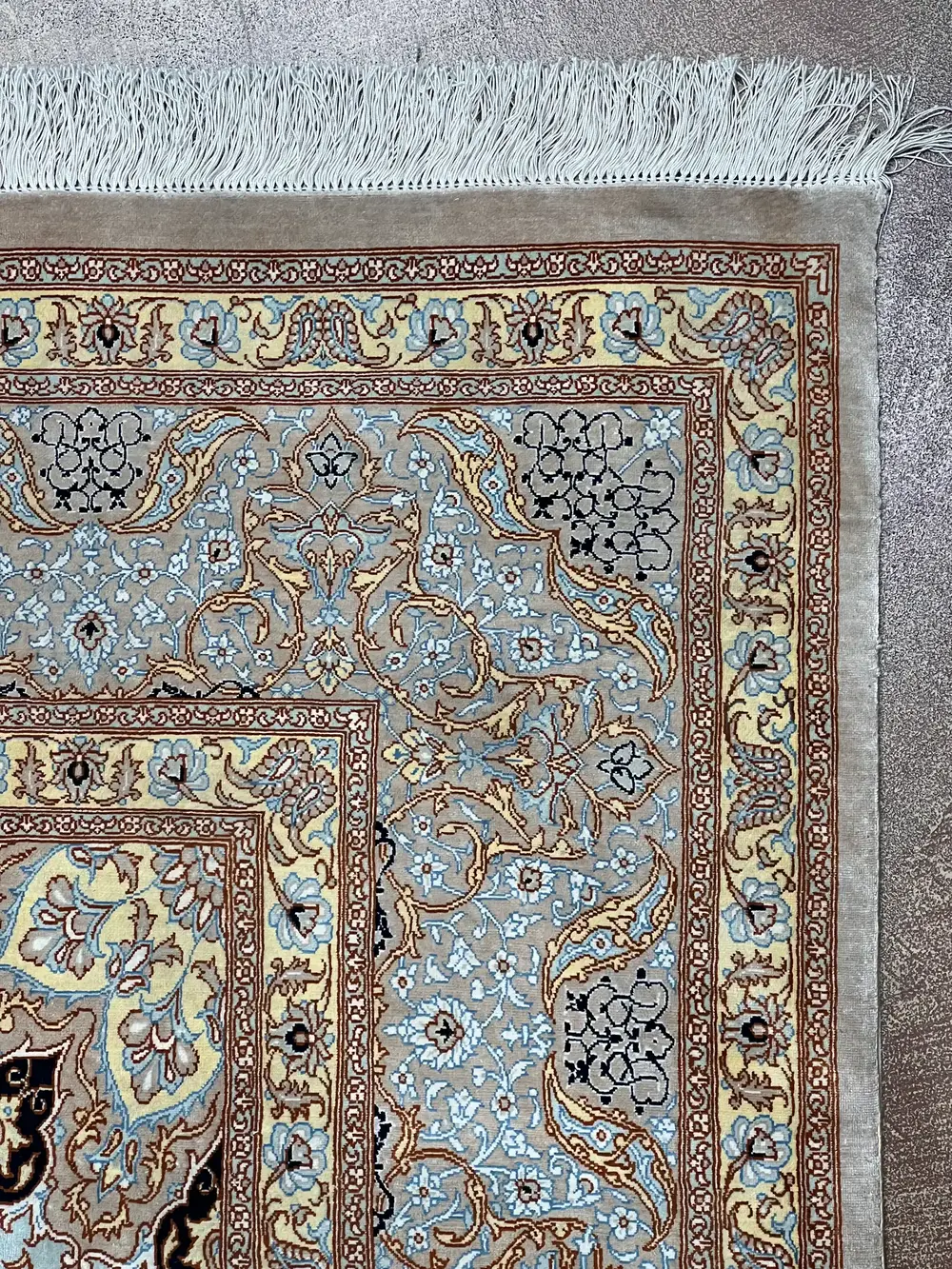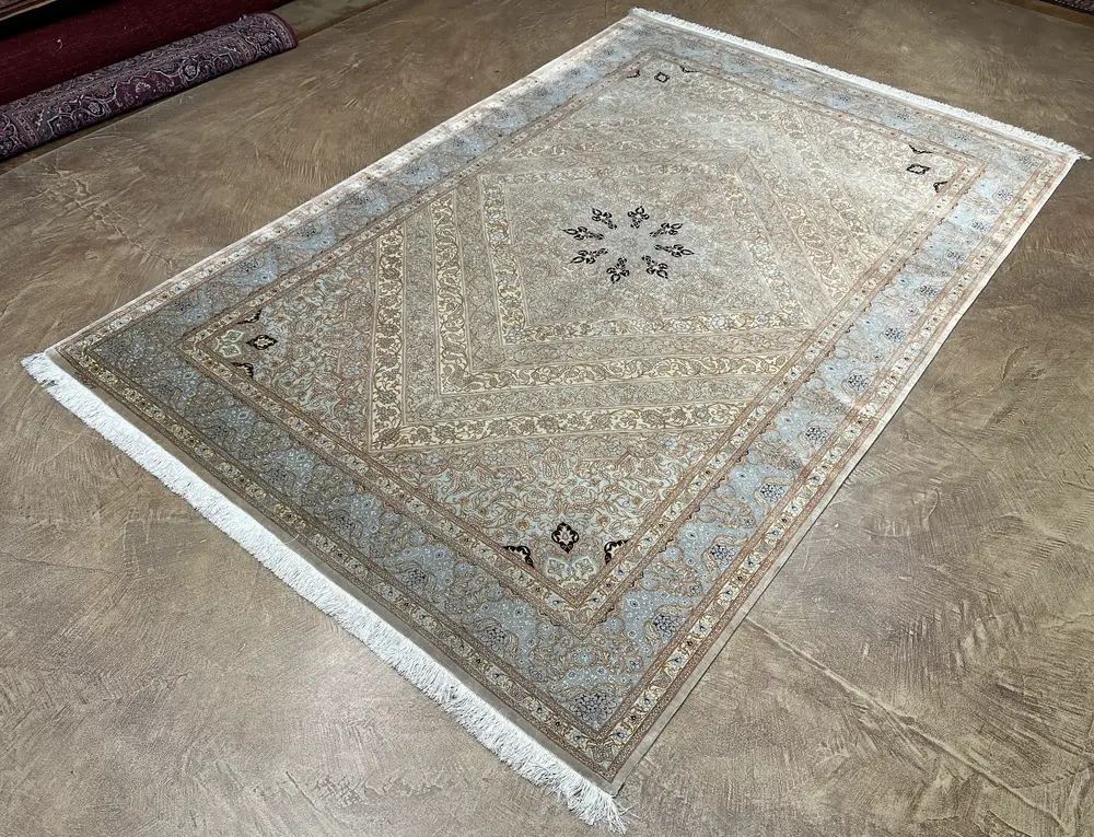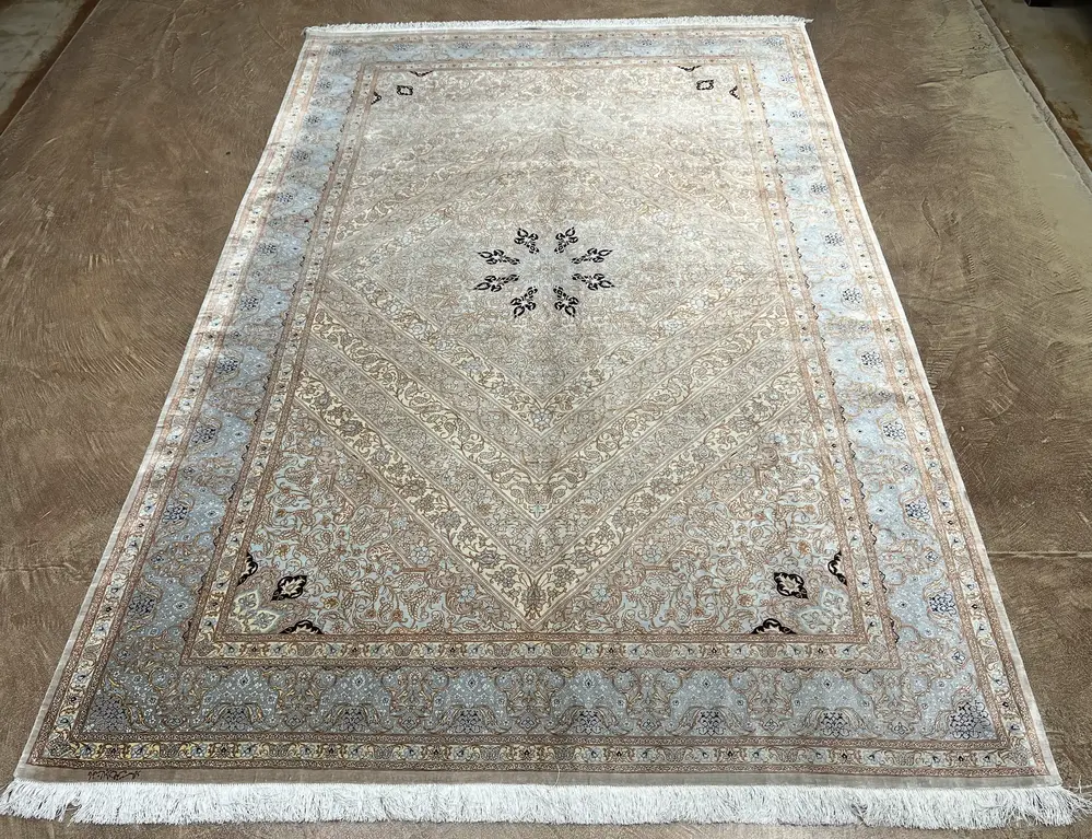 Vintage Grey Persian Silk Ghom 6′ X 9′