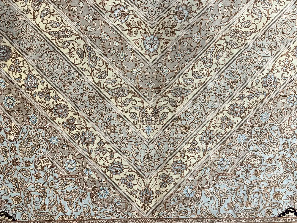 Suggested Retail Price: $21,000.00 Online Sale Price: $18,000.00 (Learn more about our shipping and returns policy) Please note, if you are buying multiple rugs or you are designer please contact us for custom pricing. This elegant silk Baft Iran Ghom Milad rug showcases the intricate craftsmanship and rich heritage of Persian textiles. The subtle hues and delicate patterns create a soft texture that enhances the visual appeal and comfort of any space. Measuring 6'5" x 9'7", this piece seamlessly blends traditional artistry with contemporary decor trends, making it a versatile addition to modern interiors. Each stitch reflects the skill of the artisans, ensuring that this rug stands out not just as a decorative item, but as a piece of art. $21,000.00 Original price was: $21,000.00.$18,000.00Current price is: $18,000.00.Add to cart
