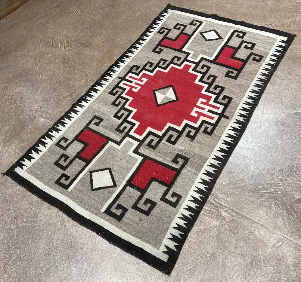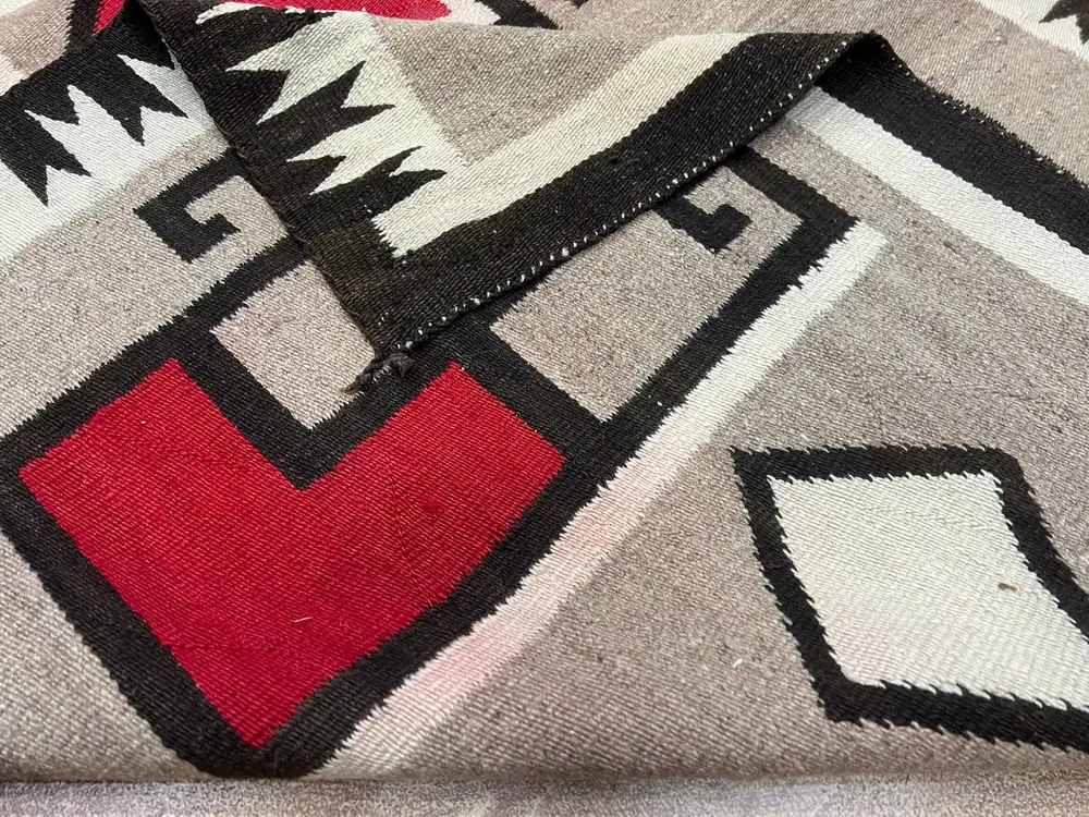 This Navajo rug showcases the rich cultural heritage and artistry intrinsic to southwestern designs. Its striking geometric patterns are accentuated by a warm color palette of deep reds, soft grays, and bold blacks, offering a perfect blend of texture and visual interest. With dimensions of 3'6" x 5'6", this piece serves as a versatile accent that complements contemporary decor trends while honoring traditional craftsmanship. A timeless addition, this rug embodies both style and a connection to Native American artistry.