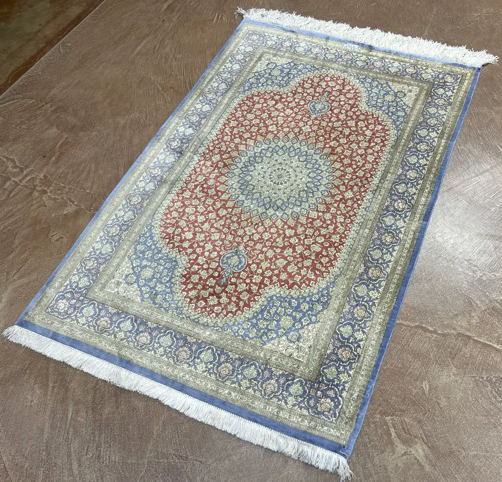 Vintage Red Persian Silk Ghom 3′ X 5′