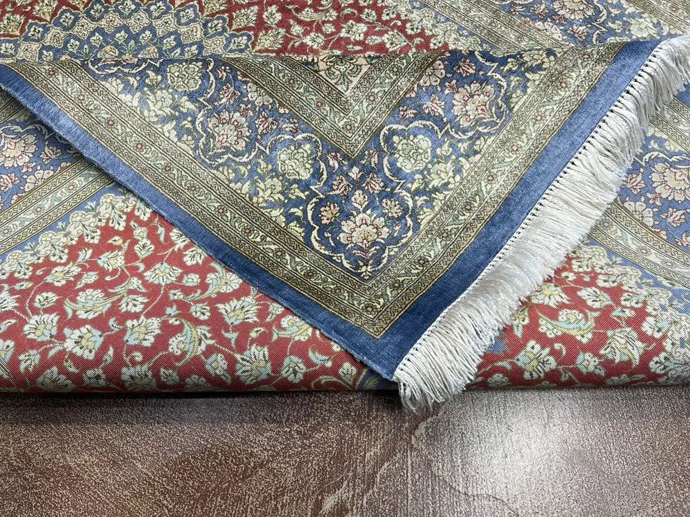 Suggested Retail Price: $5,200.00 Online Sale Price: $4,100.00 (Learn more about our shipping and returns policy) Please note, if you are buying multiple rugs or you are designer please contact us for custom pricing. This stunning silk Ghom rug embodies the rich historical tapestry of Persian craftsmanship, showcasing intricate floral motifs and a captivating color palette of deep reds and blues. The fine silk pile offers a luxurious texture that invites touch, making it a unique addition to both traditional and contemporary interiors. Designed by skilled artisans, this piece seamlessly complements modern decor trends while highlighting authentic Persian artistry. Measuring 3'3" x 4'10", it serves as a striking focal point in any space. $5,200.00 Original price was: $5,200.00.$4,100.00Current price is: $4,100.00.Add to cart